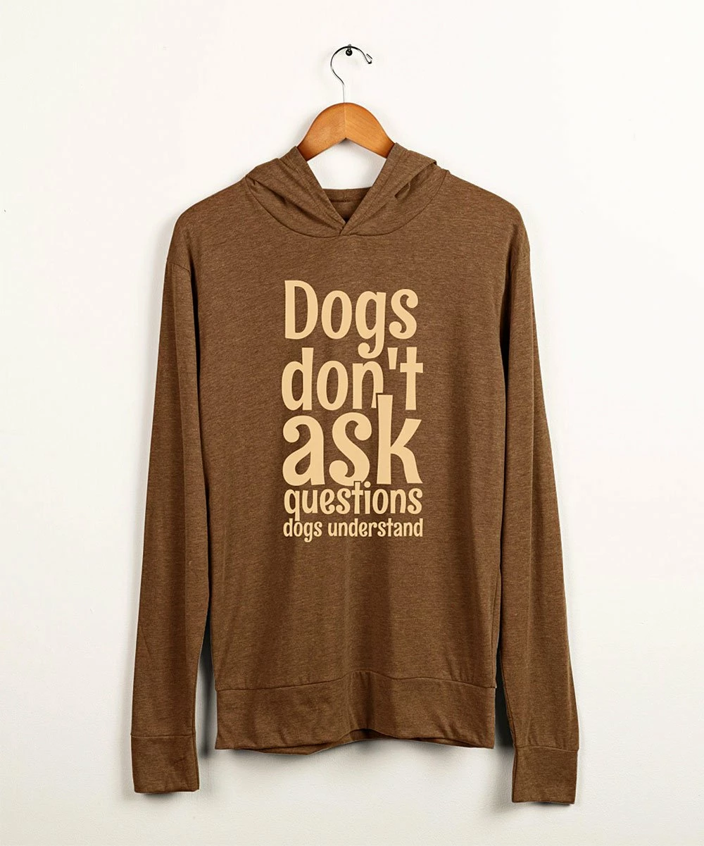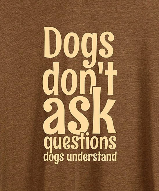 - Full graphic text: Dogs don’t ask questions. Dogs understand.