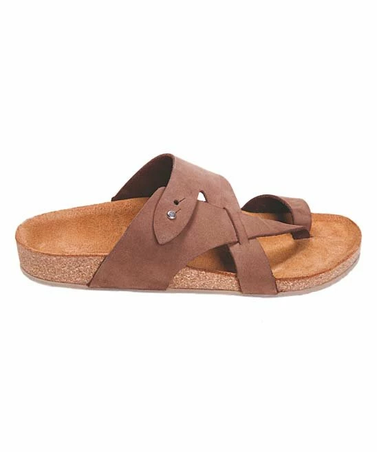 Enjoy the breeze and bolster your everyday, sunny ensembles each time you don this sandal, providing a comfy, cork-based footbed bound in genuine leather. A two-tone hue pairs easily with your multi-faceted wardrobe.