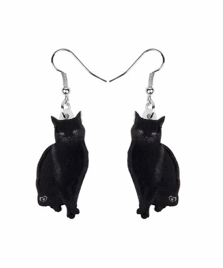 Add a spooky accent to your look with the black cat design of these chic drop earrings.