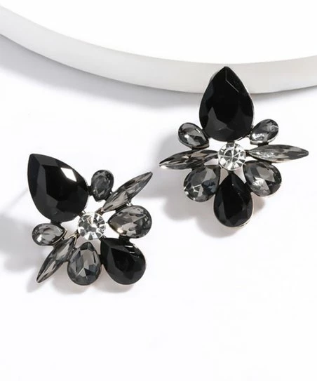 Geometric-shaped stud earrings featuring various-cut crystal set in silvertone frames.