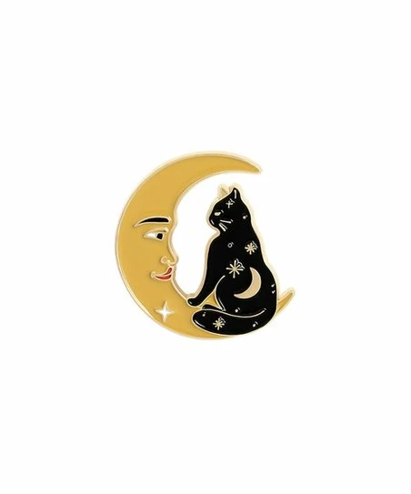 Sport some celestial vibes with this adorable, feline-inspired brooch designed with gleaming goldtone metal for playful flair on your collar.