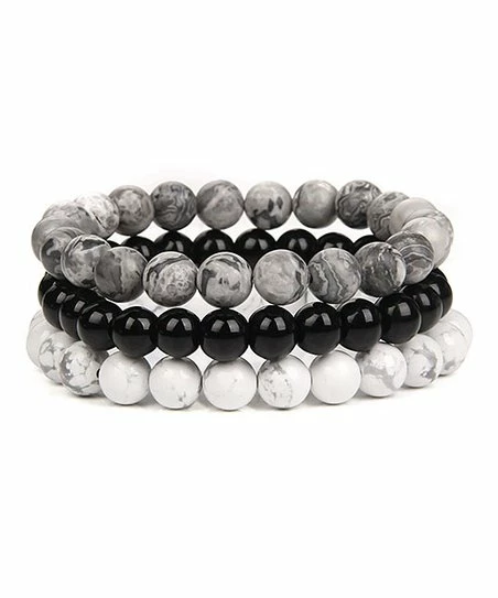 - Includes one gray, one black and one white bracelet (three pieces total)