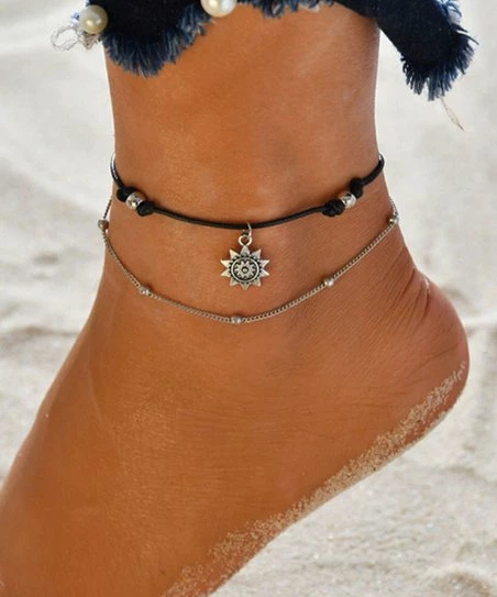 Add a flash of shimmer to your every step in this contemporary anklet set finished in a shining silvertone.