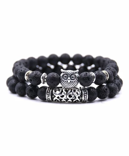 - Includes one black beaded bracelet with an owl charm and one black beaded bracelet with an intricate charm (two pieces total)
