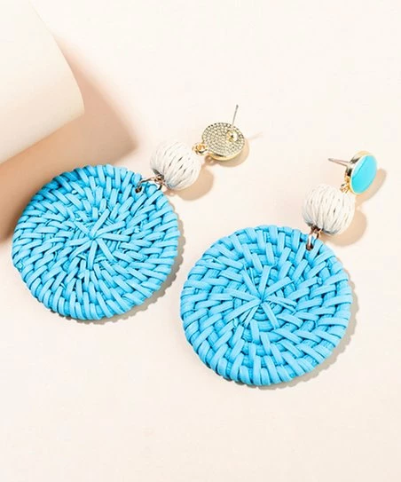 Frame your face with these drop earrings made with rattan circles and cotton thread and resin accents.