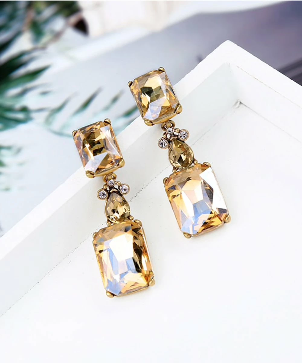 Update your jewelry box with these rectangular drop earrings crafted with crystal and a goldtone finish.