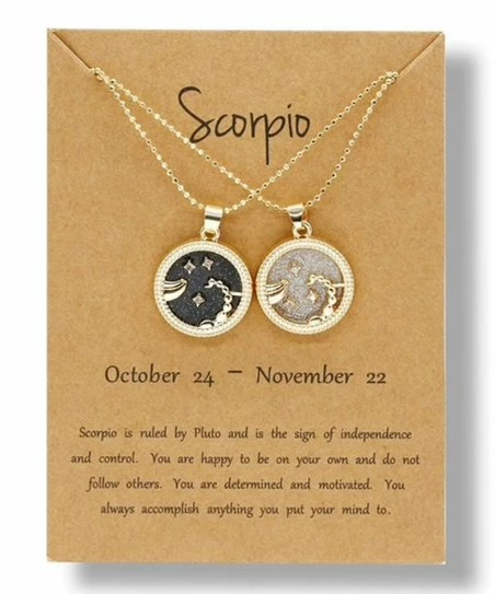 Enjoy a matching shining accessory with a friend or partner when you treat them to this matching zodiac pendant necklace set.