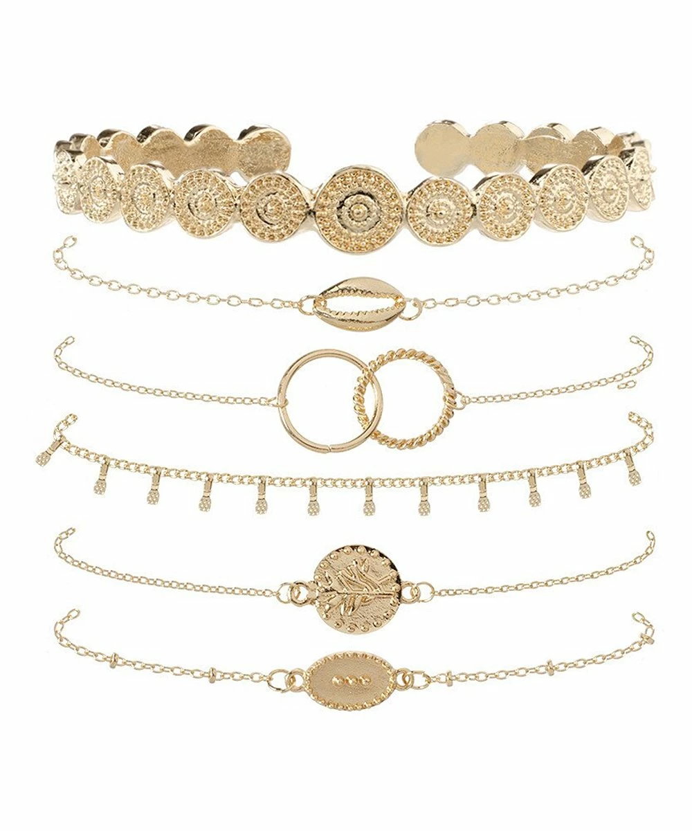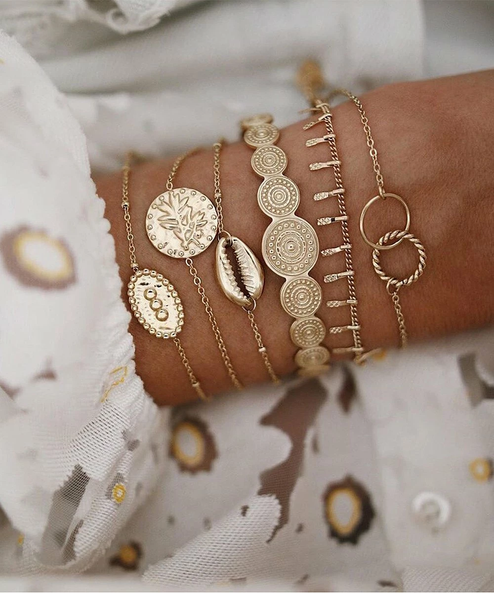 Slip some shine onto your wrist with this set of goldtone bracelets.
