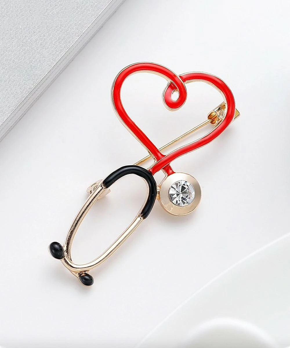 Gift the cherished nurse in your life a heartfelt token of appreciation with this themed brooch boasting a heartbeat and stethoscope design.