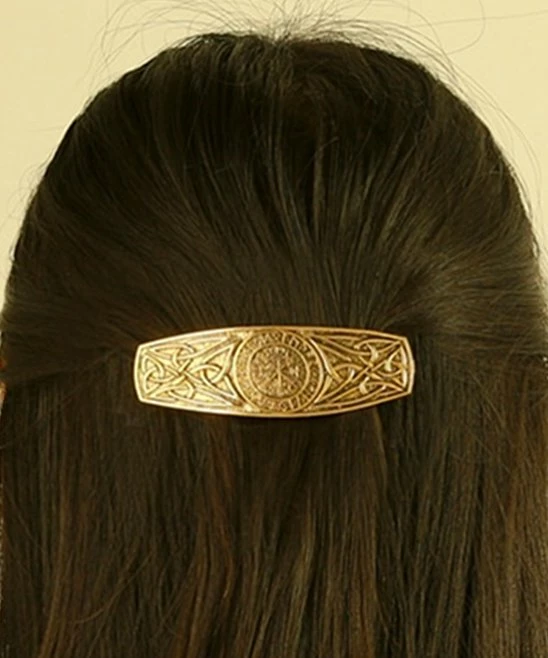 Goldtone Celtic rune designs along this hair clip fits heritage appearances.
