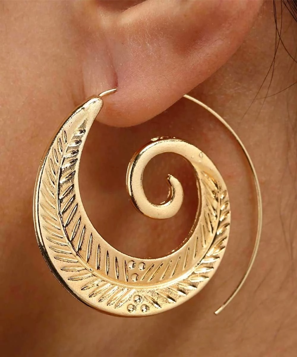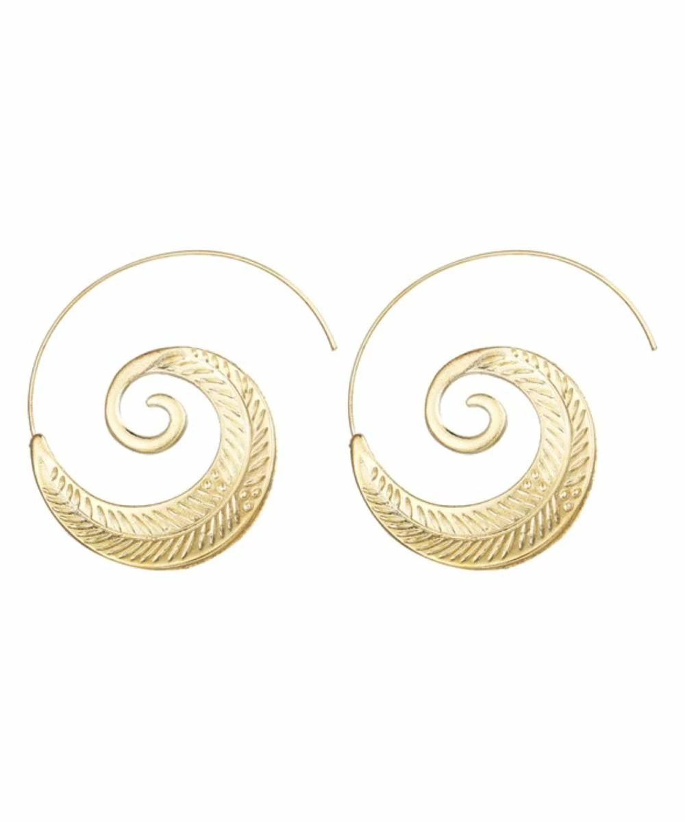 Artisan-style threader earrings featuring a swirled leaf design in a goldtone finish.