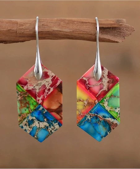 Give your ensemble a bohemian touch with these gorgeous rainbow jasper and silvertone drop earrings.