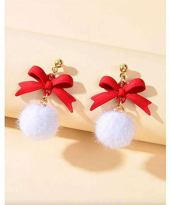 These holiday drop earrings featuring playful pom-poms and colorful resin.