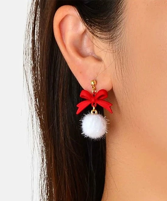 Promo 𧨠Don’t AsK Cubic Zirconia & Red Satin Ball Pave Drop Earrings For π© Women π₯°
