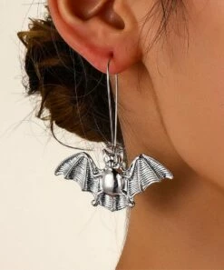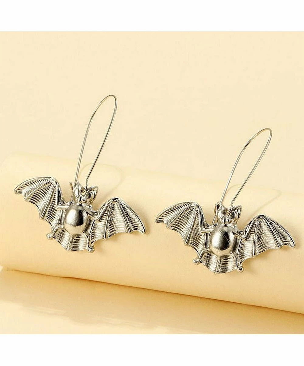 Frame your face with these spooky bat drop earrings featuring threader hoops in a silvertone finish.