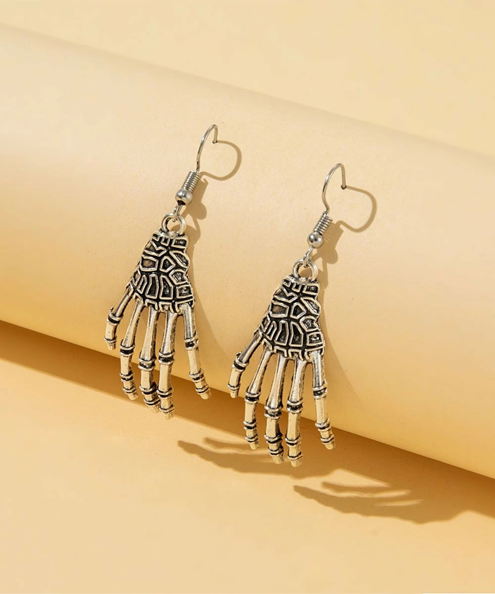 Add a spooky accent to your looks with the skeletal hand designs of these shining earrings.