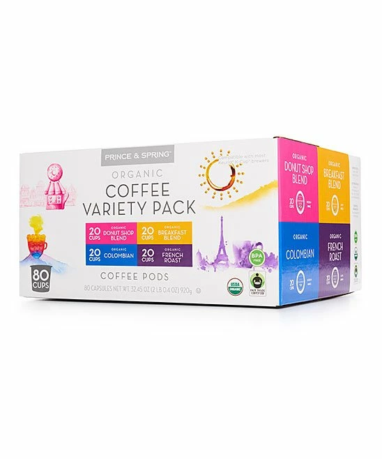 - Includes 20 Donut Shop Blend pods, 20 Breakfast Blend pods, 20 Colombian pods and 20 French Roast pods