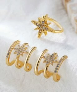 Wholesale β Don’t AsK Crystal & Goldtone Triple Star Stud Earring Set For π© Women π₯°