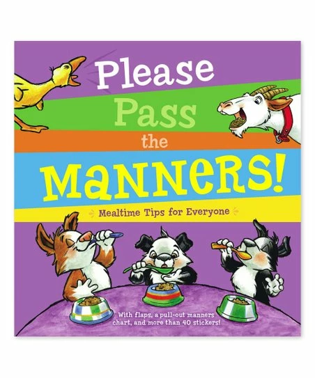 Please, donβt carry germs with you to your seat. Wash your hands before you come to eat. Grabbing and poking are quite rude. Use the word βpleaseβ when you ask for food. And so the rhyme goes as kids learn table manners with hilarious pigs, chickens, cows, puppies, and even a mouse! As the flaps open, the animals find out that learning table manners is a whole lot of fun! At the end of the book, kids can use the pull-out chart and 42 gold star stickers to keep track of their own table manners.