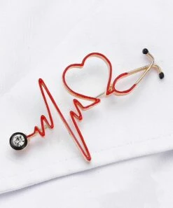 Hot Sale β€οΈ Don’t AsK Goldtone & Red Heartbeat Stethoscope Brooch For π© Women βοΈ